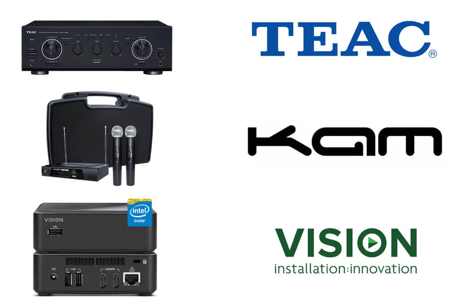 For more complex situations, the KAM, TEAC and Vision range of products are highly recommended. With multiple input and outputs and the latest power amplifiers, they will suit even the most demanding of audio requirements.